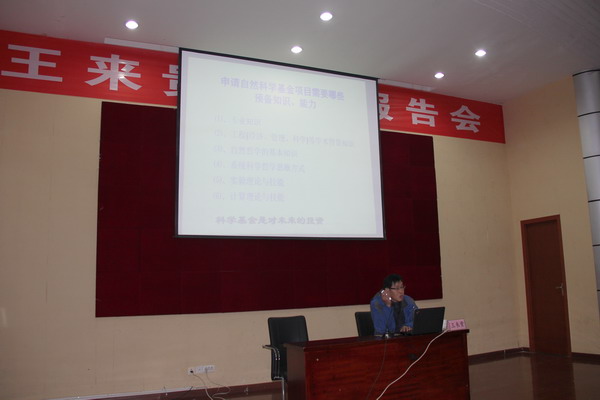 王来贵作《申请国家自然科学基金相关问题探讨》的报告(摄影:郑文兵)