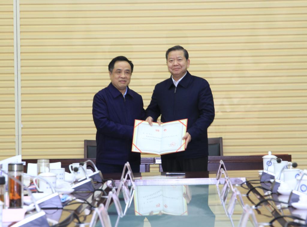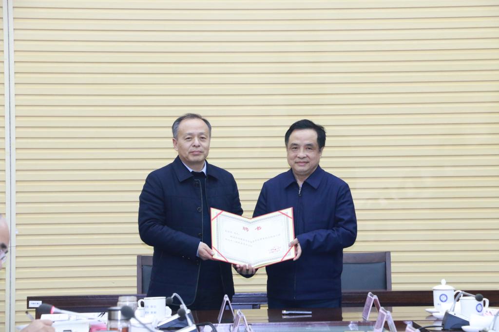 郭永存为彭苏萍颁发“煤炭安全精准开采国家地方联合工程研究中心”主任委员聘书。彭苏萍为袁亮、顾大钊、王国法颁发“煤炭安全精准开采国家地方联合工程研究中心”副主任委员聘书,为王虹、周福宝、李首滨、高有进、唐永志、杨科颁发“煤炭安全精准开采国家地方联合工程研究中心”委员(秘书)聘书。