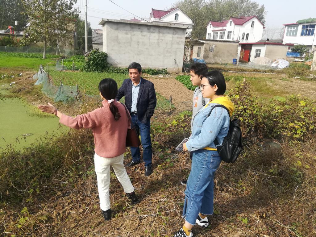 按照学校制定的孙台村定点扶贫工作实施方案,落实校科技扶贫工作中美好乡村建设规划设计的部署要求,队员们在校驻村扶贫干部秦怀宏、章德全的陪同下,与村委会干部一起先后驱车前往村中心生态池塘(面积约3000平方米)、村主要排水灌溉渠(全长约2公里,宽约30米)、村拟建观光旅游休闲景点(面积约300亩)三个规划设计点,开展规划设计实地勘测。在实地勘测过程中土木设计团队与我校扶贫干部、村委会干部分别就每个设计点的功能区划分、相关项目参数设置、实现的效果等进行深入的讨论。